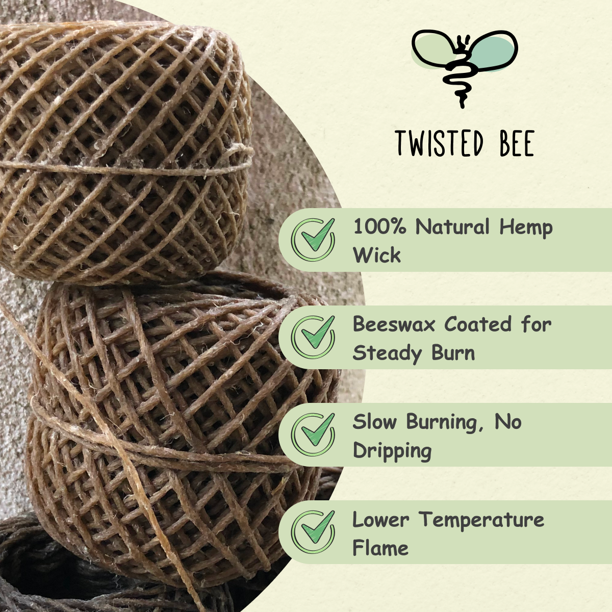 - 100ft of Thick (~2.0mm), Premium Organic Beeswax Coated Rolled Hemp Twine. Ideal for making tea lights, votives, tapers and other similar candles.