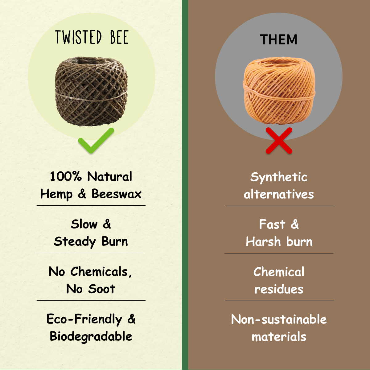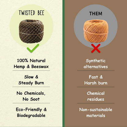 Say goodbye to chemical lighters. Our premium 100% organic hemp wick, coated in natural beeswax, delivers a pure, slow-burning flame without the harshness of butane or synthetic materials.