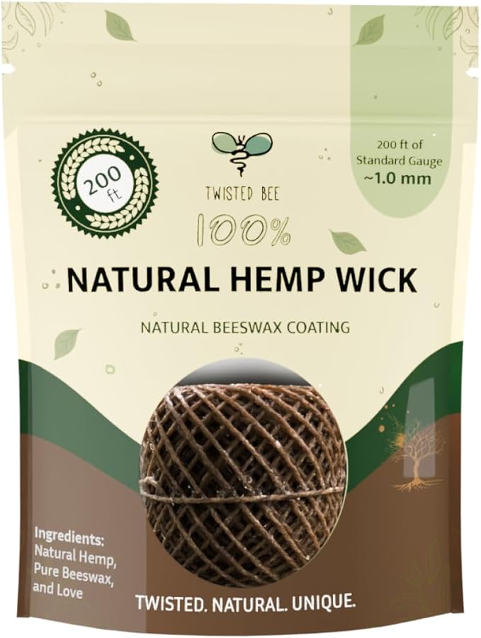 100% Natural Hemp Wick with Beeswax Coating (Natural 200ft Standard)