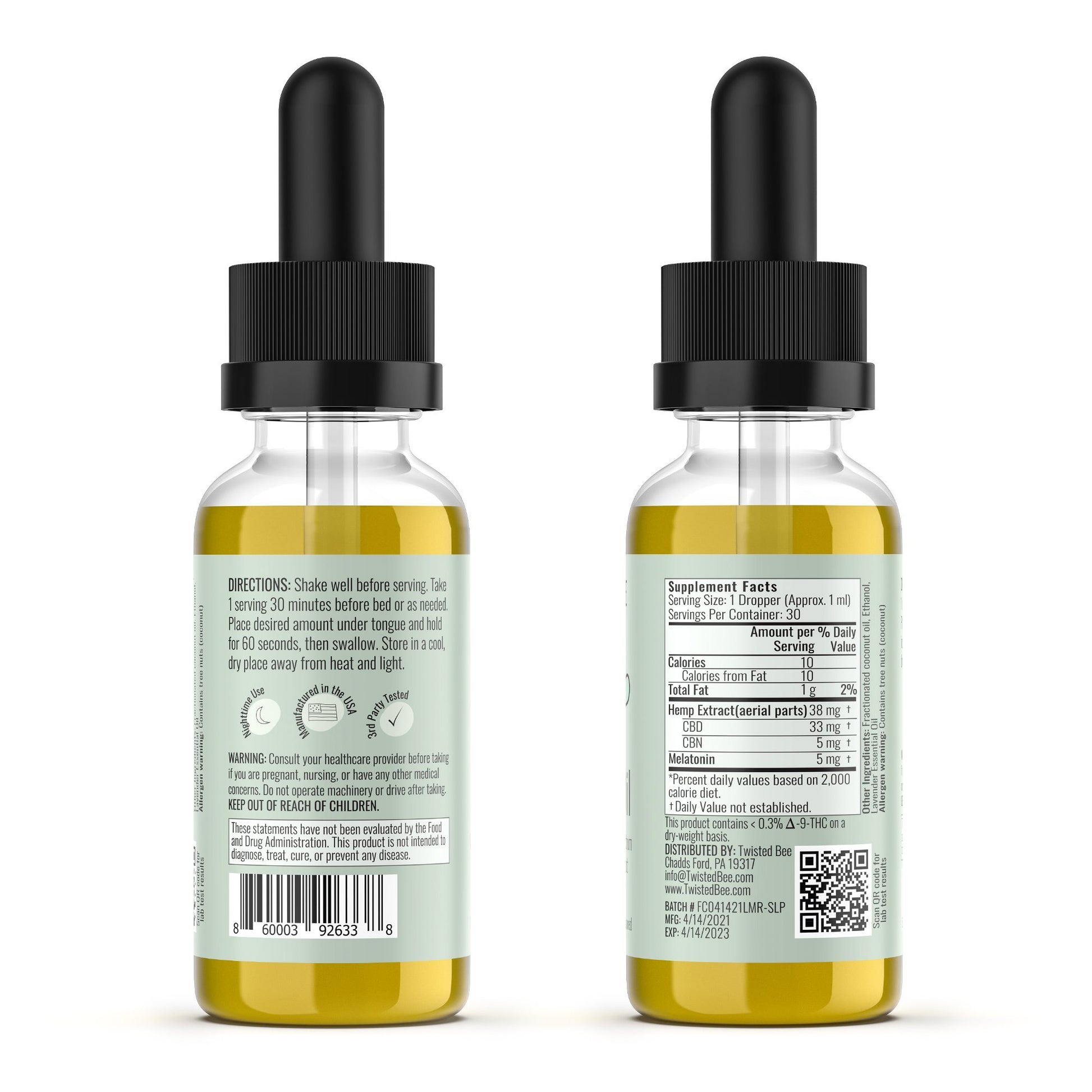 The dose on the label says 100ml before bed, however you are suppose to start small and build up to that amount. So I started at 50ml. Truthfully the taste was a little off putting, but it seemed to help, and I was determined. I was still getting up 3-4 times a night but I fell back to sleep easier. So I stuck with it. For the next 4 days I continued at 50ml, then went to 75ml for two days and finally 100ml. The night I took 100ml before bed, I got up only once and slept like a log. I was shocked. Maybe it was a fluke. The next 4 nights were the same thing - only one bathroom visit and sound asleep before and after! I am amazed! So I’m writing this to thank everyone at Twisted Bee for giving me a good night’s sleep and to encourage others to give the Sleep Oil a try.