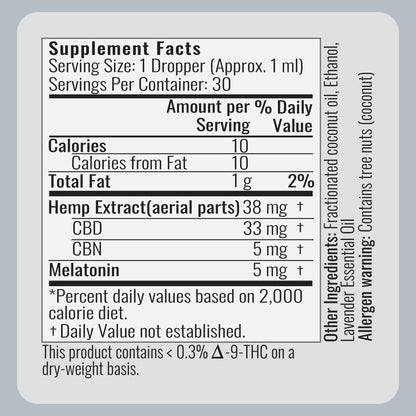 Ready for a great night's sleep? We've infused our most effective full-spectrum CBD with all-natural melatonin in a lavender flavor that combines for an unbeatable relaxing, sleep agent. Each bottle contains 30ml of terpene-rich phytocannabinoid oil, extracted using our Flash Activated™ Natural Vapor Distilled™ Extraction Method of organic, Colorado-grown hemp plants.
