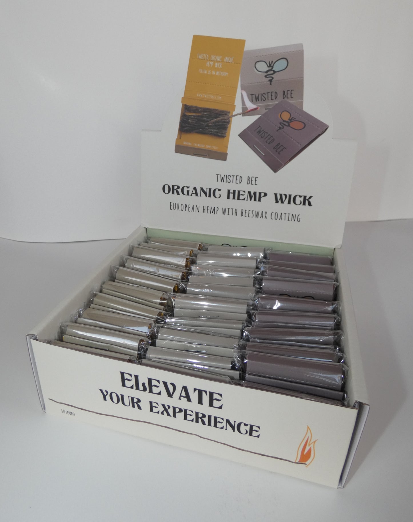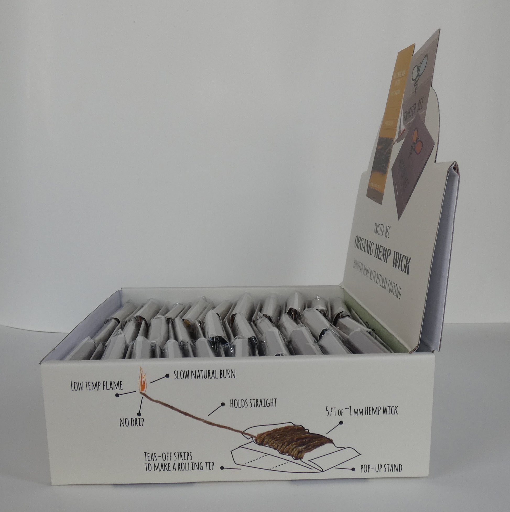 Organic Hemp Wick (60 Twisted Bee Pocket Packs) Retail Display Box
