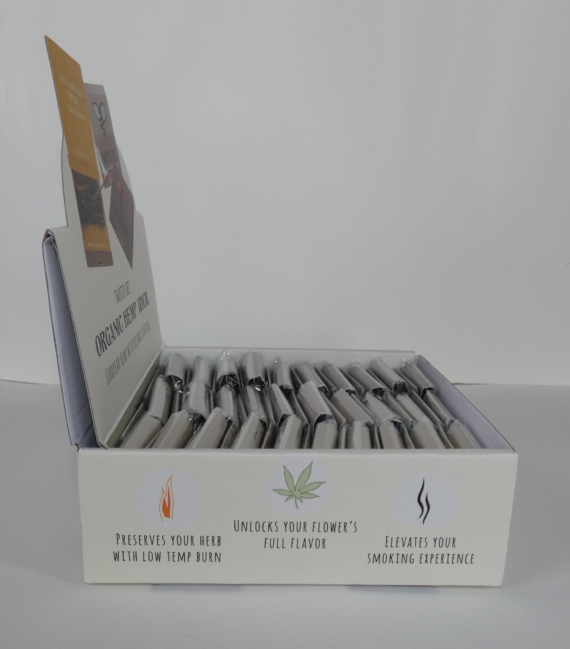 Stop inhaling the butane gas and flint directly from the lighter. Avoid harmful chemicals released from matches! Using Twisted Bee Hemp Wick will reduce harmful exposure to butane and preserve the flavor of your next cigar or pipe.
